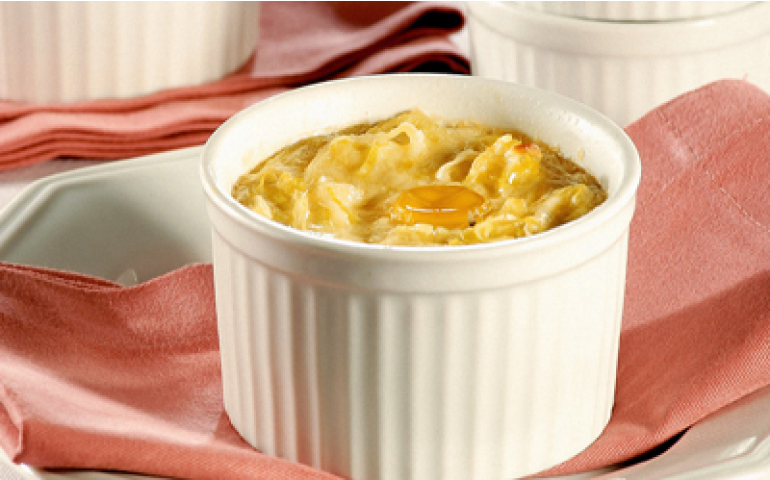 Distribua em fôrmas individuais untadas e quebre um ovinho no topo de cada porção.