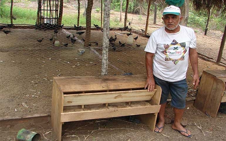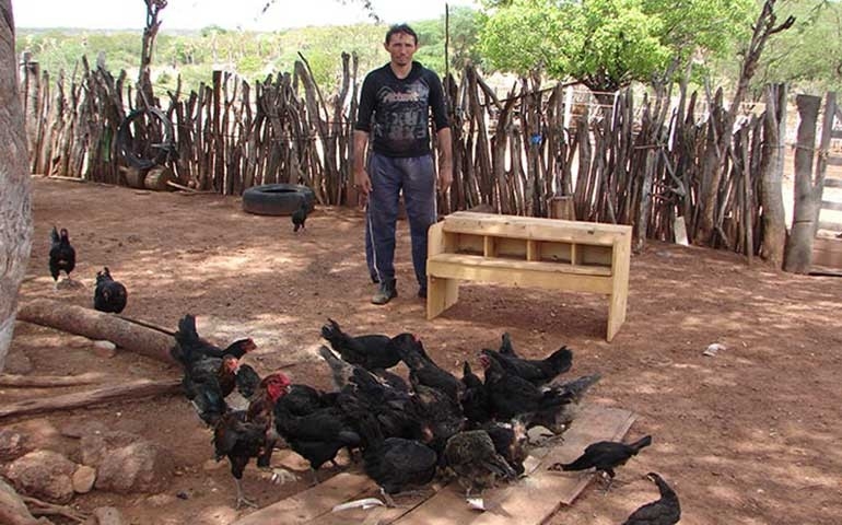 Ele conta que boa parte da produção era consumida por animais, cães, o lagarto Teiú e o pássaro Cancão, este, um predador voraz do sertão nordestino. “Estamos agora mais vigilantes e atentos. O coletor é inovador e resolveu o problema. Normalizamos a produção e estamos avançando no aumento da criação”. A produção média diária de ovos caipiras é de 40 unidades, longe ainda da meta estabelecida pelo criador. Ele quer atingir no mínimo 100 por dia. Parte do produto é comercializada na própria comunidade e a outra fica para a geração de pintos, que são vendidos a R$3,00 a unidade.