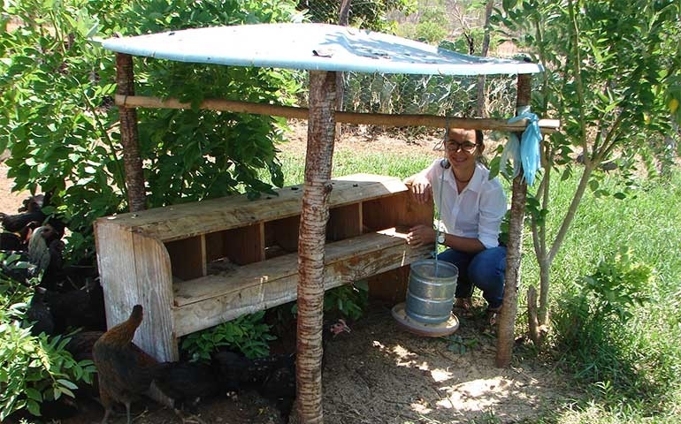 Na comunidade Boca da Vereda, a 48 quilômetros do centro histórico de Oeiras, a primeira capital do Piauí, está um dos melhores exemplos de eficiência do coletor de ovos desenvolvido pela Embrapa. Um plantel de 500 galinhas produz dezenas de ovos diariamente, que são comercializados nos mercadinhos da região a R$0,70 a unidade. “Antes de usarmos o coletor, nossas perdas eram de quase 50%. Aqui, os ataques eram do Teiú, do Cancão e também das próprias galinhas”, diz Valdiléia de Moura Silva, 20 anos, a responsável pela criação (foto no destaque).