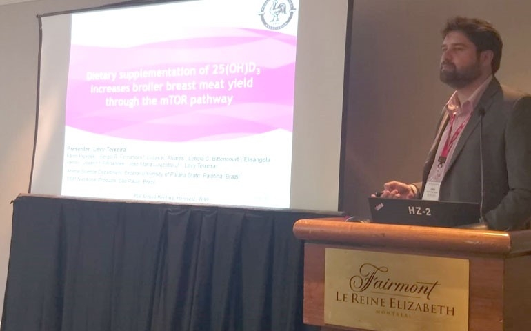 O evento também contou com apresentação de trabalhos científicos sobre recentes resultados em frangos avaliando 25(OH)D3, apresentados por Francine Falleiros e Levy Teixeira, pesquisadores da DSM na América Latina (fotos na galeria abaixo).