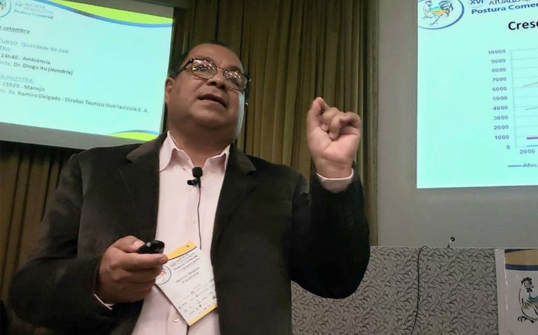 Ramiro Delgado, diretor técnico Nutriavicola S.A., grande empreendimento avícola do Paraguai, falou sobre a importância do manejo e da nutrição das aves para o sucesso comercial da granja. É que a nutrição adequada das poedeiras é fator determinante para a produção de ovos com boa aparência – principalmente a cor da casca – e com qualidade interna, que levam à maior opção de compra pelo consumidor.