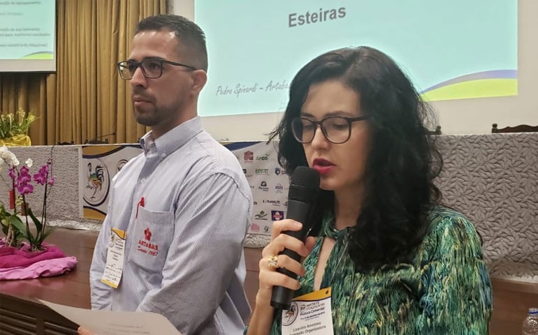 Vários profissionais que atuam com equipamentos para aviários falaram sobre a importância do manejo correto das tecnologias implantadas nas granjas. Pedro Henrique Pereira Spinardi, da Artabas, falou sobre a necessidade de ações preventivas de limpeza e manutenção especialmente das esteiras transportadoras dos ovos, que se não forem bem cuidadas podem prejudicar a qualidade dos ovos.
