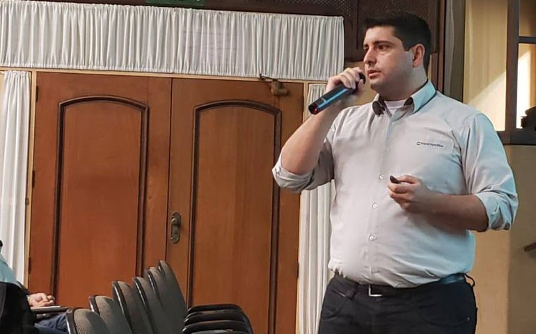 Cleison Marques de Neira, da empresa Trouw Nutrition, encerrou a programação do minicurso Qualidade do Ovo, no dia 11, apresentando tecnologias para o produtor fazer monitoria das perdas de ovos durante o processamento do produto na granja. Segundo ele, dados da Embrapa apontam que até 12% dos ovos produzidos têm problemas de casca, sendo que de 3% a 10% são por rupturas da casca. Cleison garantiu ser possível ter essas perdas abaixo de 3% com a monitoria correta durante o processamento dos ovos.