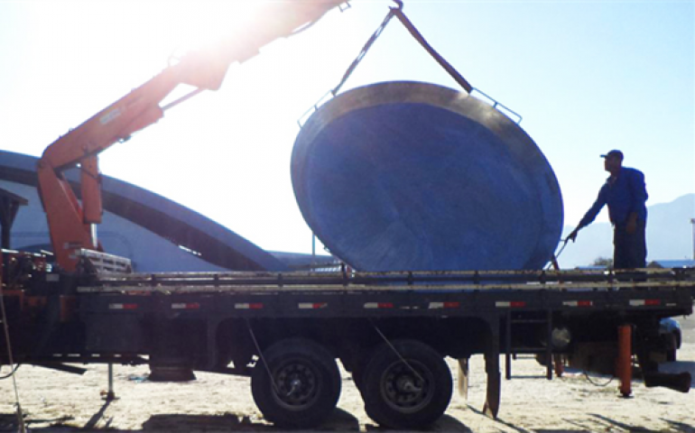 | Frigideira gigante chega ao local onde será realizada a exposição rural |