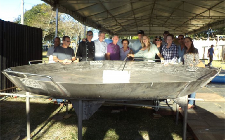 Tudo é superlativo nesse projeto. Para dar conta da Omelete Gigante do Espírito Santo foi preciso mandar fazer uma frigideira e um fogão com as mesmas proporções do prato que será servido. Os cálculos exigiram, inclusive, a participação do físico e matemático Paulo Randow, responsável pela coordenação dessa estrutura. “A frigideira gigante tem o fundo com 3 metros de diâmetro, conta com 20 centímetros de altura e pesa 400 kg. Para fabricá-la contamos também com a expertise da empresa Saveli Industrial”, diz.