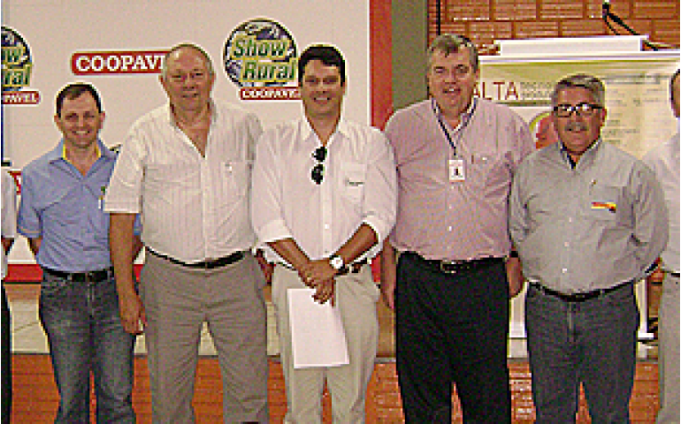 | Reunidos em Cascavel (PR), alguns membros da entidade: Jerry Cirelli, Carlos Fujiwara, Mauro Pangrácio, Carlos Pulici, Etore Schirato, Gilberto Hobold, Ivo Oltramari, Homero Braun e Giovanni Meneghesso |