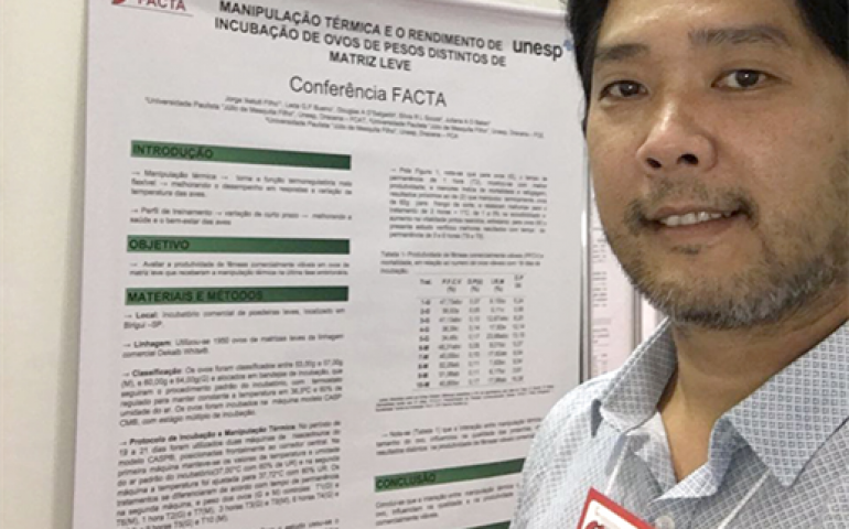 Vencedor Pôster – Jorge Ikefuti Filho. Instituição: Universidade Estadual Júlio de Mesquita Filho (UNESP). Trabalho: “Manipulação térmica e o rendimento de incubação de ovos de pesos distintos de matriz leve”.