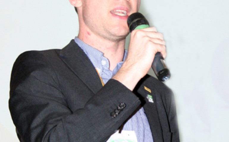 O jovem executivo Eduardo Souza Pinto, da H&N Internacional, abriu a programação, no primeiro dia do evento, mostrando a avicultura de postura no mundo, como se faz hoje, como se fará daqui a pouco, numa visão amplificada do túnel do tempo ao contrário, olhando para a frente e indicando mudanças não para um futuro distante, mas para daqui a pouco, talvez já.