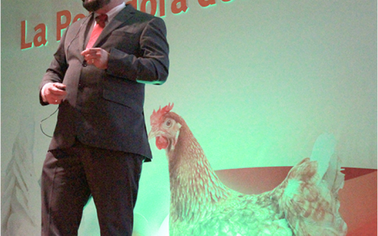 Quem explica é Otávio Rech, gerente regional de avicultura de postura da DSM para a América Latina. Rech apresentou o programa durante o evento da DSM, realizado no auditório do Hotel Hilton, em Guadalajara. “Ao funcionar como uma sugestão nutricional, ou como um pacote de soluções nutricionais de alta tecnologia para as aves poedeiras, que têm condições de produzir grande quantidade de ovos vendáveis e de alta qualidade, os ingredientes da DSM permitem que essas aves expressem todo o seu potencial genético à medida que atendem as suas necessidades nutricionais, elevam os seus índices zootécnicos e mantêm alto o status sanitário do plantel.
