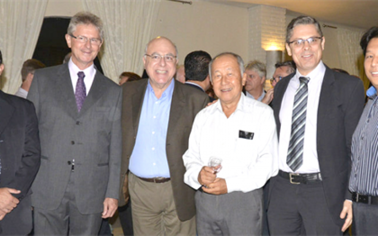 Bastante prestigiado por representantes de todos os elos da cadeia avícola paulista e nacional, o jantar de confraternização da APA, mais uma vez, representou a união que tem mantido em alta o sucesso da avicultura líder do país. Estiveram presentes, entre outros líderes e representantes, Fernando Buchala, coordenador de Defesa Agropecuária do Estado de São Paulo; Carlos Ikeda, James Nakanishi e Gustavo Shimizu – representantes do Sindicato Rural de Bastos; Choichi Sato – presidente da Cooperativa de Guatapará; Ariel Mendes, diretor de produção da ABPA; José Perboyre, diretor financeiro da ABPA; Luciano Lagatta, da Coordenadoria de Defesa Agropecuária; Masaio Mizuno Ishizuka, presidente do Comitê Estadual de Sanidade Avícola de São Paulo; e André de Oliveira Mendonça, Coordenador da Lanagro.