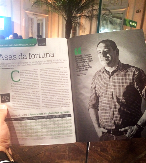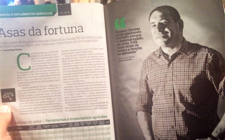 Confira um resumo da reportagem: “Com faturamento bruto de R$ 100 milhões no ano passado, exportando para a América Latina, Estados Unidos e Oriente Médio, a paulista Kilbra ficou em primeiro lugar na categoria Ferramentas e Implementos Agrícolas do Prêmio Melhores do Agronegócio 2015. Com foco nos equipamentos para a avicultura, em 2016 a empresa ampliará em 5.000 metros quadrados o parque fabril, investindo R$ 16 milhões em obras e na aquisição de maquinário de última geração, importado da Suíça.