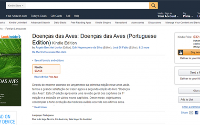 O livro Doenças das Aves pode ser adquirido no www.amazon.com.