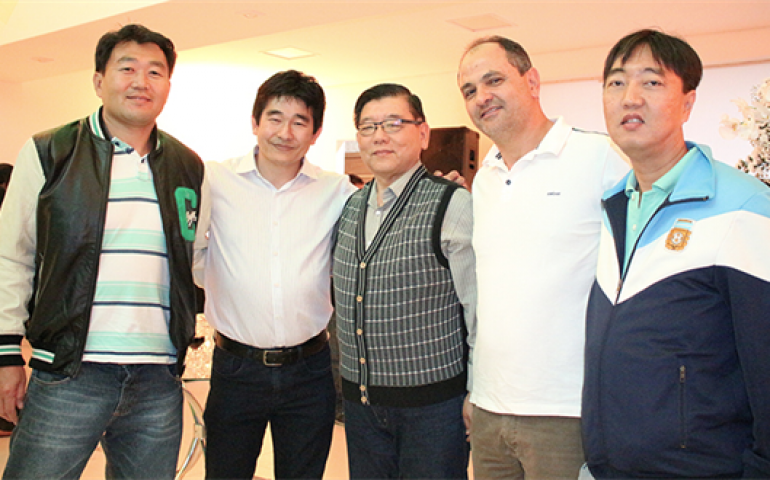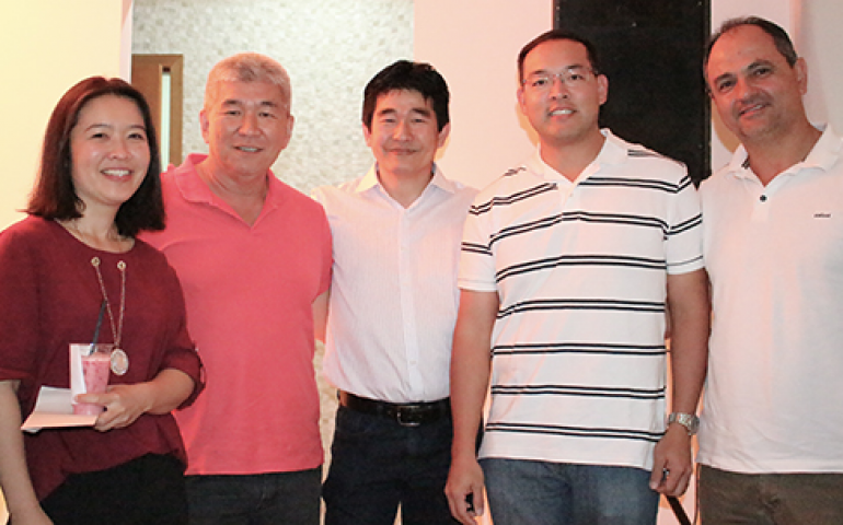 | Flávio Watanabe (o segundo à esquerda):recepção aos avicultores e novo desafio em Garça |