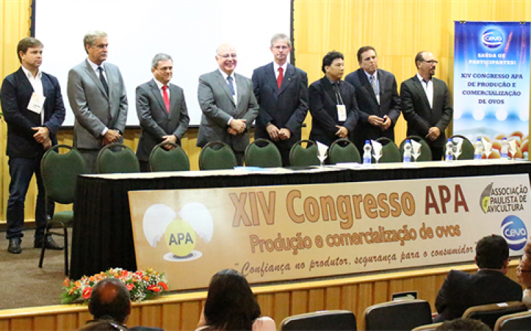 Presentes à cerimônia, representando dos diversos elos da cadeia avícola brasileira, o presidente da APA, Erico Pozzer – que destacou, mais uma vez, a importância da sanidade para a segurança do plantel brasileiro; o secretário de agricultura do Estado de São Paulo, Reinaldo Jardim – que elencou as diversas realizações da secretaria em parceria com o setor avícola paulista; Edival Veras, presidente da Avipe - Associação de Avicultores de Pernambuco falou sobre a importância do trabalho da ABPA e do Instituto Ovos Brasil; João Jorge, presidente da Aceav - Associação Cearense de Avicultura - reforçou as palavras do colega Edival Veras sobre a valorização do ovo com trabalhos associativos; e James Nakanishi, presidente da comissão organizadora do Congresso da APA 2016. Da Capital do Ovo, Nakanishi lembrou a importância da avicultura de postura se manter firme, produzindo com vigor e sistematicamente.