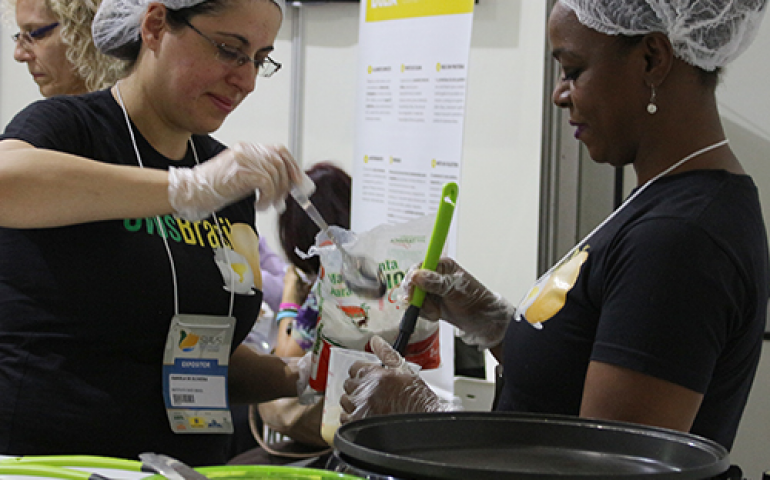 | As cozinheiras do Instituto Ovos Brasil preparam as delícias que os visitantes provaram no estande |