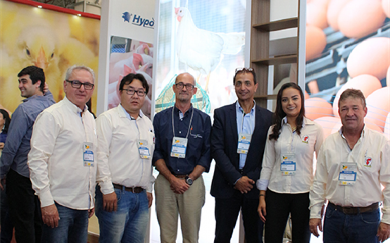 | A equipe Hisex a postos no movimentado estande da Hendrix |