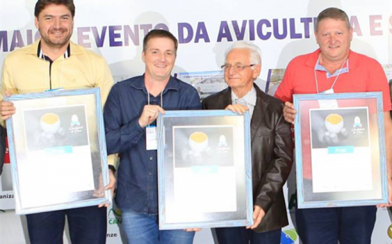 Além de Tesch, a Coopeavi premiou Erguener Foesch (2º colocado) e Waldecy Lemke (3º colocado), ambos também de Santa Maria, o segundo município com a maior produção de ovos do Brasil. O presidente da cooperativa, Arno Potratz, o vice, Denilson Potratz, e o diretor administrativo comercial, Argêo João Uliana, entregaram certificados e os prêmios aos vencedores.