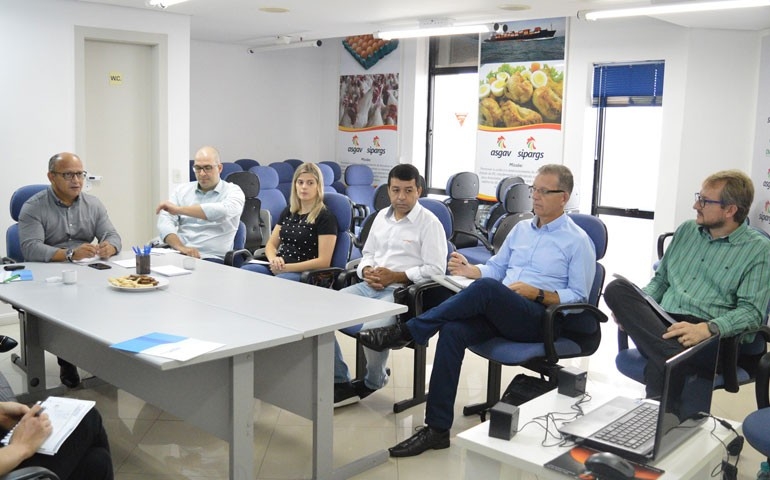 Além do coordenador José Eduardo dos Santos e de Raquel Melchior, consultora técnica do Programa Ovos RS, estiveram na sede da Asgav, em Porto Alegre, Alessandra Sella, médica veterinária responsável técnica e representante DSM no Rio Grande do Sul; Flávio Renato Silva, médico veterinário responsável técnico pela Naturovos; Fernando Panizzi Sartor, médico veterinário responsável técnico pela Ovos Nienow; Felipe Fagundes, gerente nacional avicultura da Alltech; José Francisco Miranda, gerente regional Latam da DSM; João Dionísio Henn, doutor em Zootecnia, analista A na Embrapa Suínos e Aves; Paula Gabriela S. Pires, Doutora em Zootecnia, pós-doutoranda na University of California – Davis; Raul Filippsen, diretor-proprietário da Ovos Filippsen; Silvia de Carli, médica veterinária, doutorando Ciências Veterinárias na UFRGS; Vanessa Mirela Novatzki, técnica em alimentos, controle de qualidade da Bampi Ovos; Amanda Queiroz, engenheira de alimentos do Senai; e Tânia Menegol, técnica em alimentos do Senai/RS.