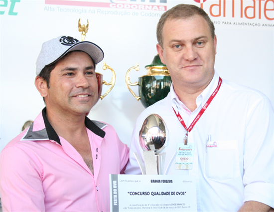 | 4º lugar Ovos Brancos - Granja Yorozuya: Ailton Miranda (gerente) com Cacio Fracaro (Interaves) |