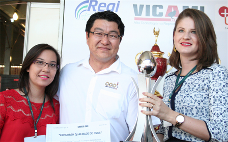 | 2º lugar Ovos Brancos: Granja Ono - Rodrigo Ono com Marcela Yamasi e Tamiri Yamani (Sicoob) |