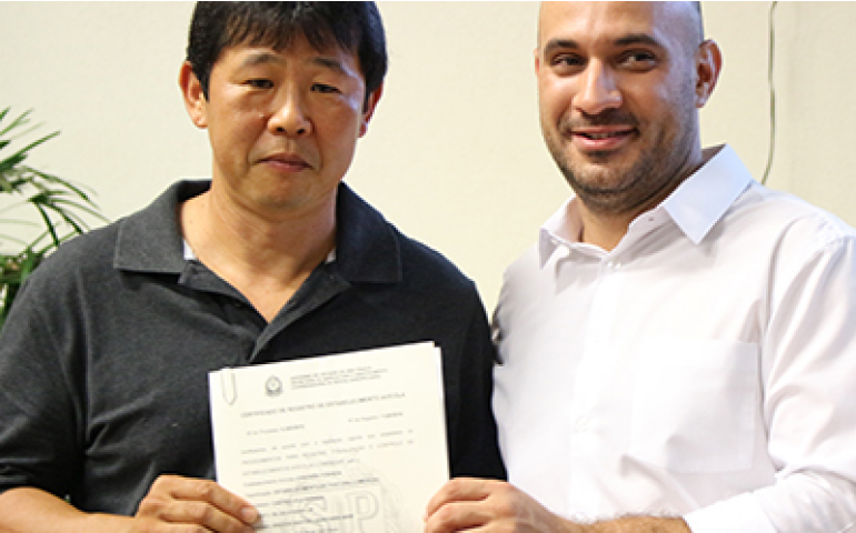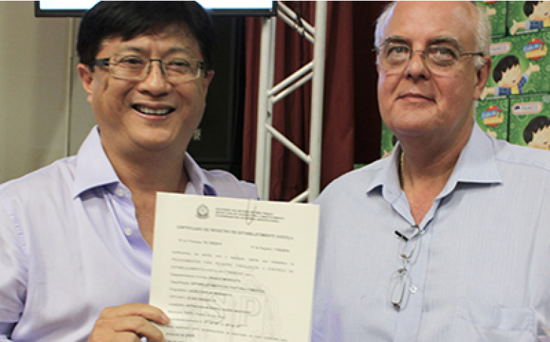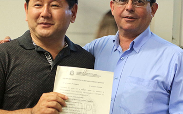 “Este é um um momento único em que a avicultura de Bastos mostra à avicultura do Brasil essa pujança, esse arrojo e essa conscientização da importância de programas de biosseguridade”, ressaltou o secretário da APA. Ao anunciar o registro da Granja Ikeda, Bottura fez questão de ressaltar que o plano de biosseguridade em curso em Bastos foi idealizado por seu proprietário, Carlos Ikeda: “Este é o homem idealizador de tudo isso, que lutou, que conseguiu liderar um grupo para implantar um plano que é único no Brasil inteiro”, elogiou. (Saiba mais sobre o trabalho de biosseguridade de Bastos no link Bastos põe em prática programa de prevenção à influenza aviária).