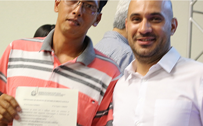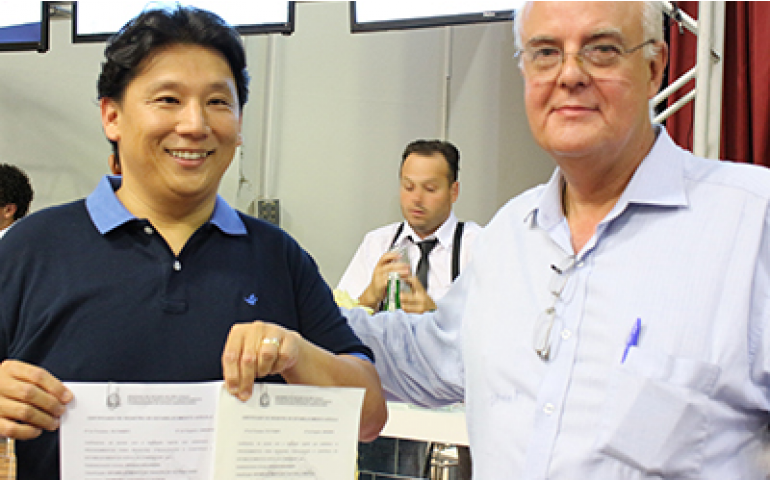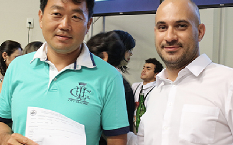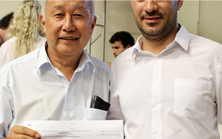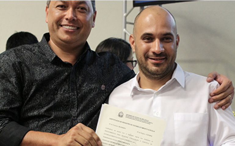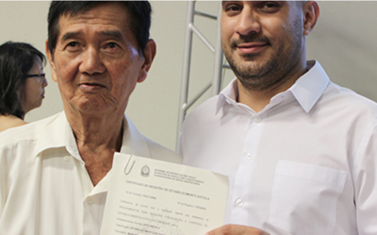 Num misto de cerimônia informal e festa, a entrega dos certificados foi feita com a presença do coordenador da Defesa Sanitária do Estado de São Paulo, o médico veterinário Fernando Buchala; do coordenador do Programa Estadual de Sanidade Avícola, o também médico veterinário Luciano Lagatta; e de José de Barros, chefe do Escritório de Defesa Agropecuária (EDA) de Tupã. Estavam presentes, também, o médico veterinário José Roberto Bottura - secretário executivo da APA, a Associação Paulista de Avicultura - e a professora Masaio Mizuno Ishizuka – presidente do Comitê de Sanidade Avícola do Estado de São Paulo. Ambos atuam como consultores na comissão que os avicultores de Bastos instituíram em 2015 para estabelecer um programa de biosseguridade para as granjas da região, programa que está em fase de divulgação e gradativa implantação.