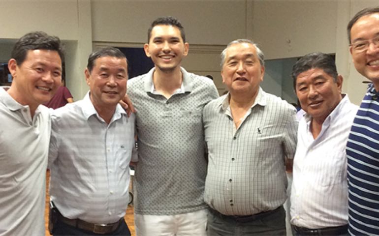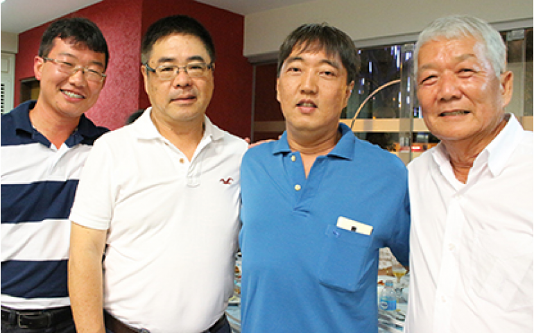 | Shoji, Eiji, Leandro, Seitão, Yoshio e Gustavo: confraternização |