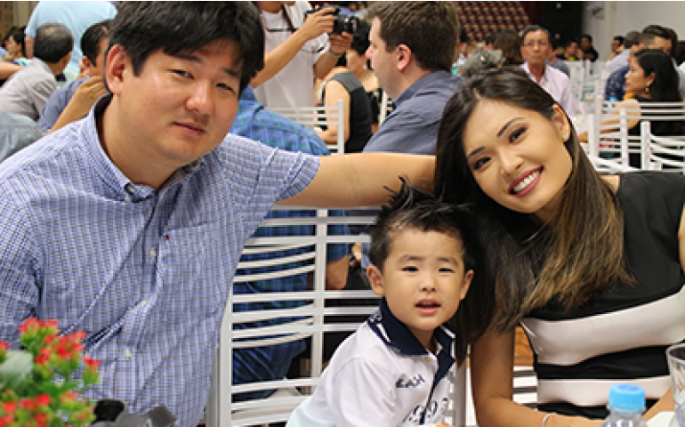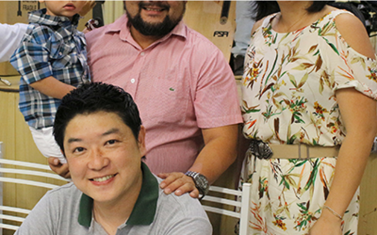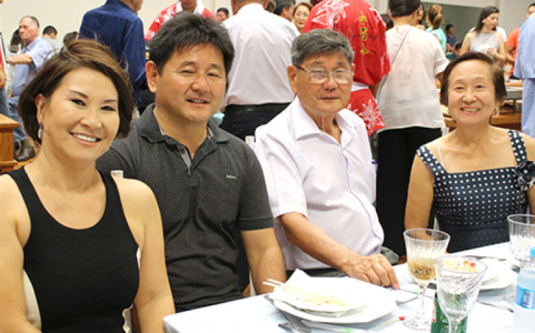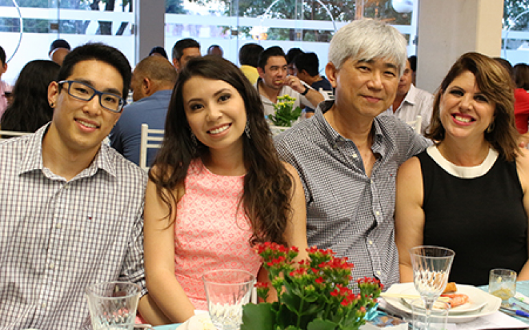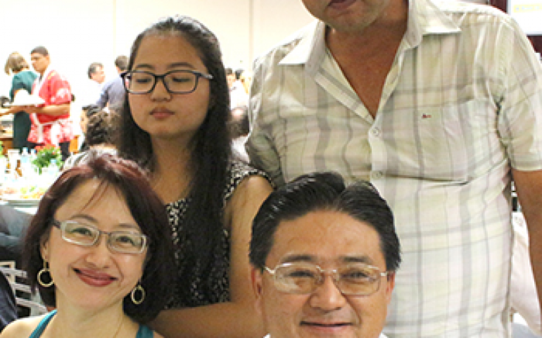 | Sérgio e Dirce Kakimoto, a filha Ana Clara, e Noboru Yabuta |