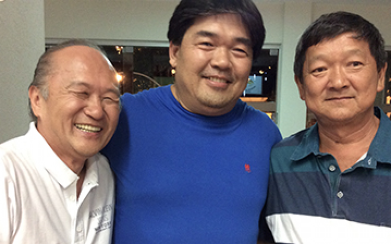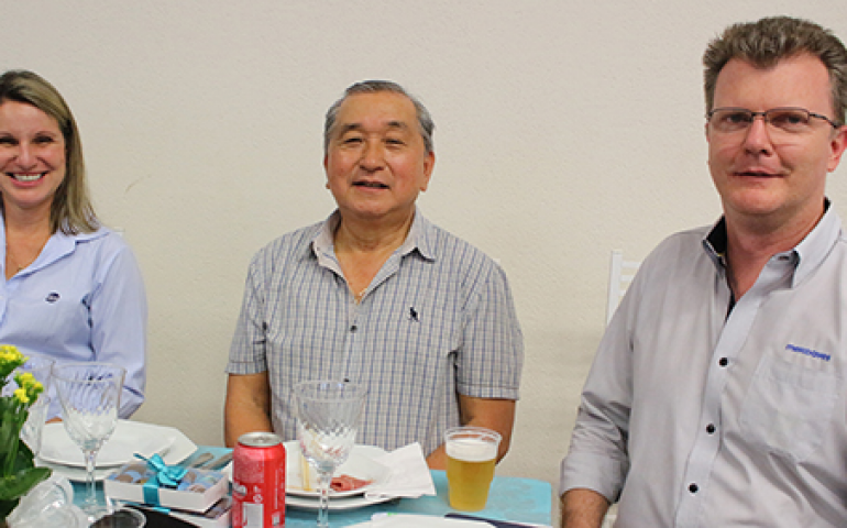 | Carlos Ikeda com a professora Masaio Mizuno Ishizuka e o advogado Giovane Marcussi |