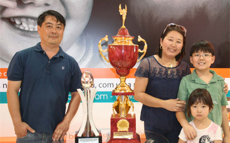 | Cláudio Yajima, a esposa Maira Cristina e os filhos Gabriel e Manuela: Novogen é parceira |