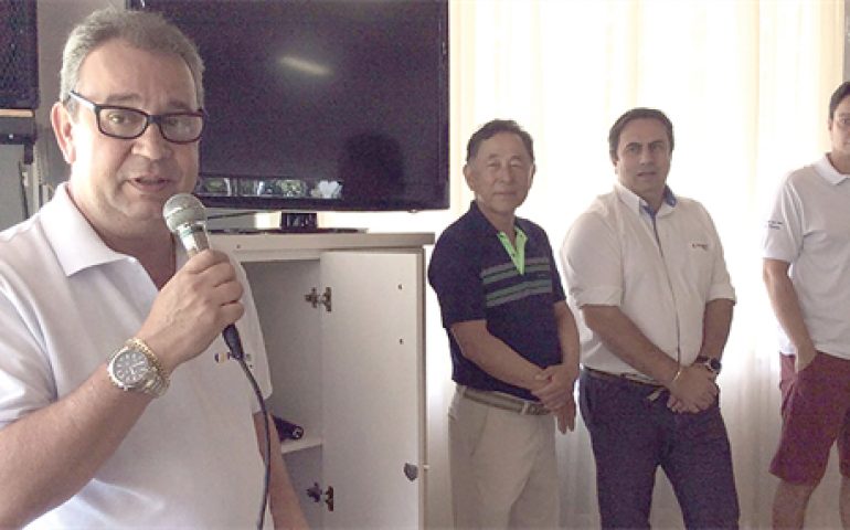 | Cesar Rezende, da Planalto Postura, fala aos avicultores e golfistas em geral no Bastos Golfe Club |