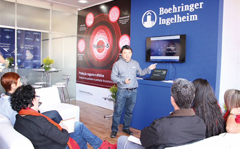 A Boehringer Ingelheim redimensionou seu estande na ala externa da exposição, tornando-o ainda mais confortável e acolhedor. No dia 12, recepcionou jornalistas para uma palestra sobre vacinas apresentada pelo médico veterinário Alberto Inoue, gerente de marketing unidade de aves e suínos da BI Saúde Animal, e, em seguida, serviu um almoço aos repórteres de diversas revistas especializadas no setor avícola, entre elas, a revista e site A Hora do Ovo.
