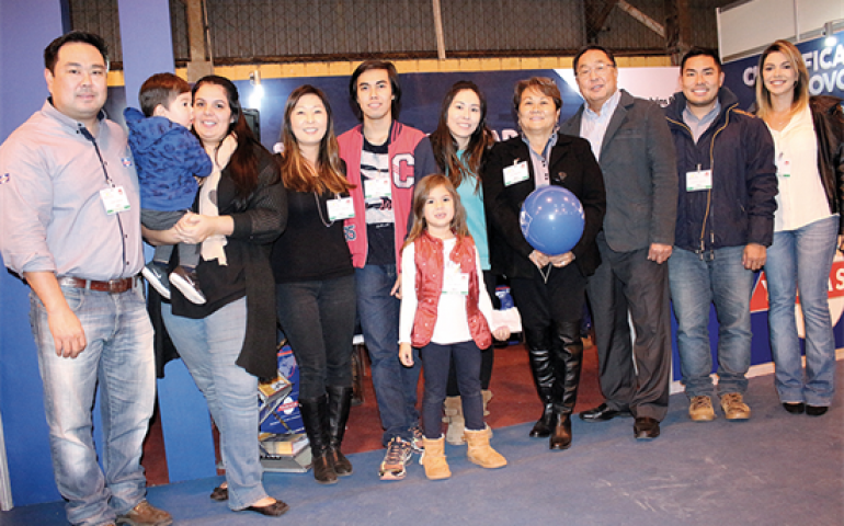 | Família Yamasaki, prestigiando os 90 anos de Bastos, no estande da Yamasa |