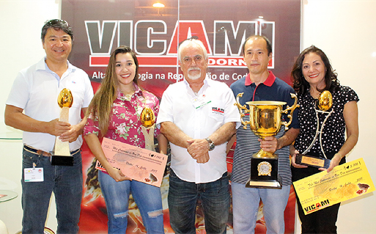 | Campeões de ovos de codorna com Osvaldo Esperança Rocha, da Vicami |